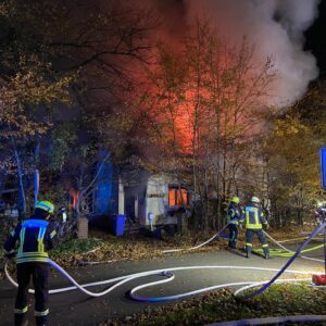Die Einsatzmeldung lautet „F03 Gebäude in Vollbrand“.