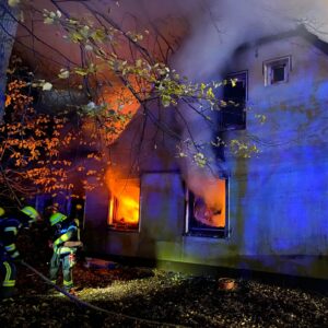 Die Einsatzmeldung lautet „F03 Gebäude in Vollbrand“.